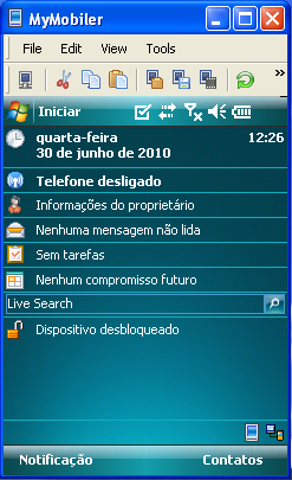 Além disso, com o MyMobiler você também usa o mouse e o teclado para controlar o dispositivo, explorar arquivos e rodar aplicações. Depois de instalado no PC – junto com o ActiveSync – basta conectar o cabo do celular e rodar o MyMobiler.